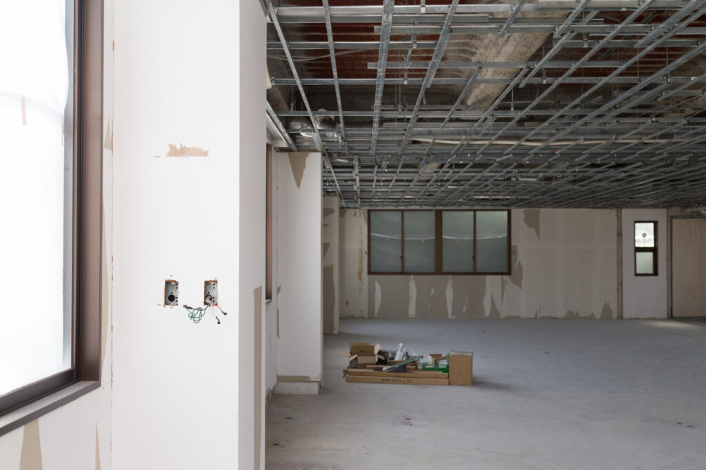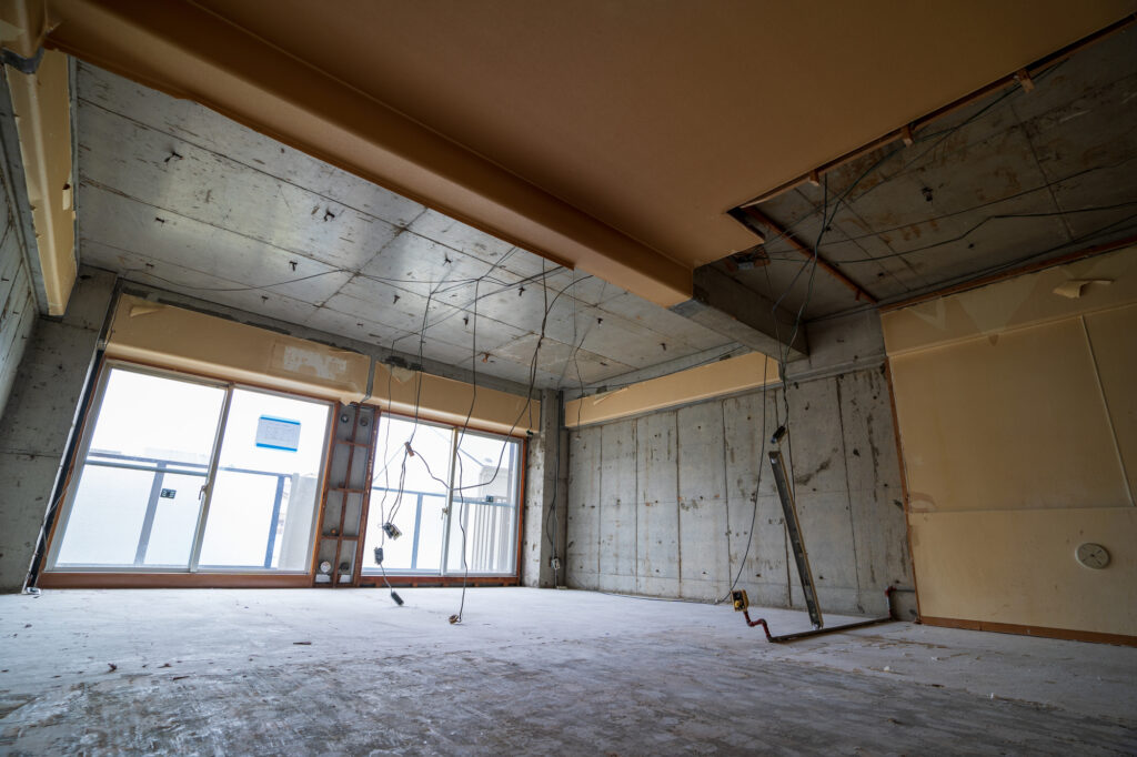 柱や壁などの構造物を残して、内装・設備を撤去します。